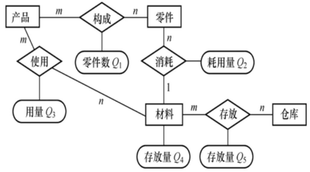 (3)工厂的零件之间存在着组合关系(M:N联系)